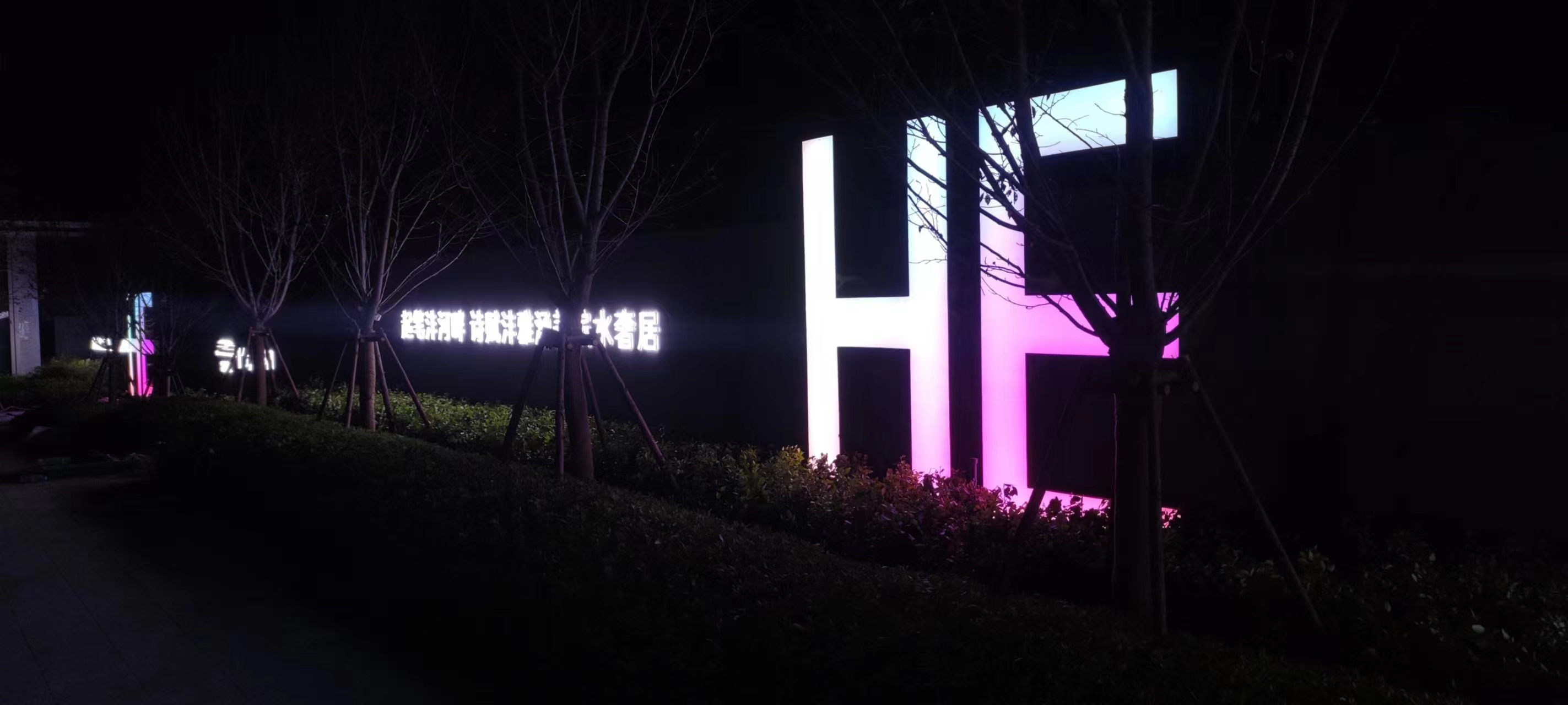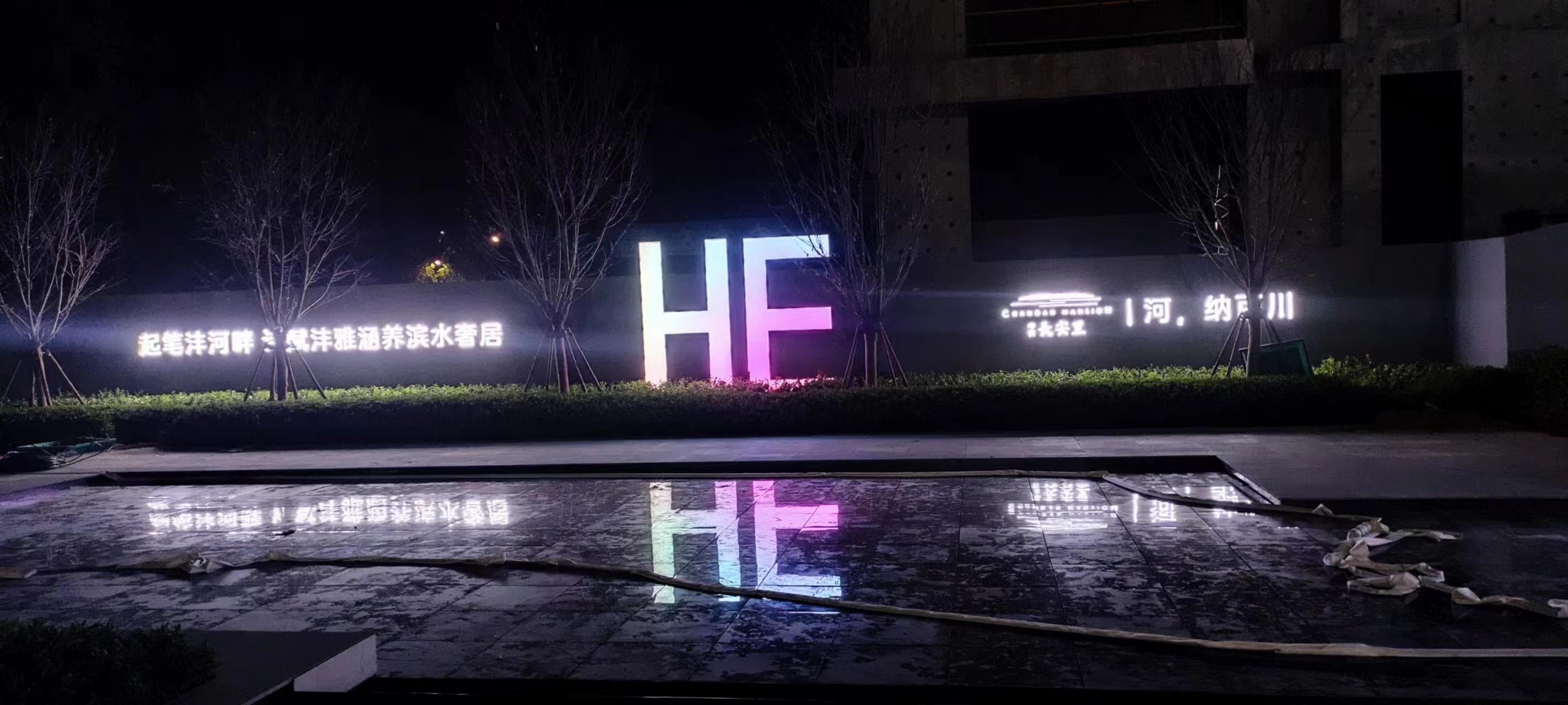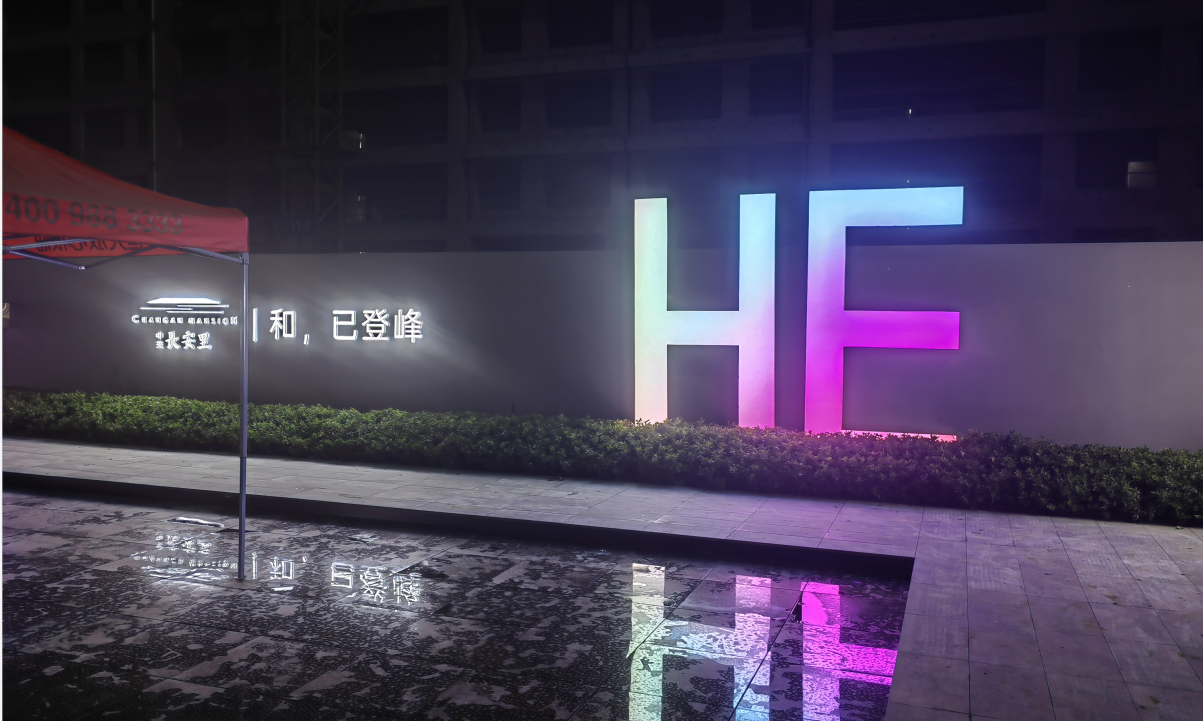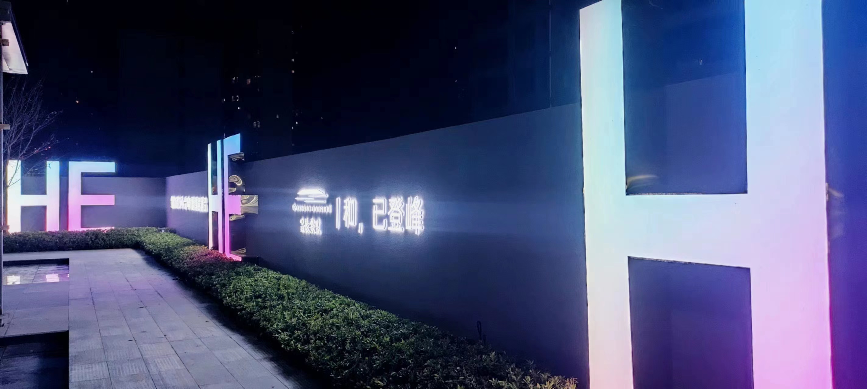 中交長安里圍擋制作完工,漆黑的夜晚下,顯得十分突出顯眼。高級感滿滿的。